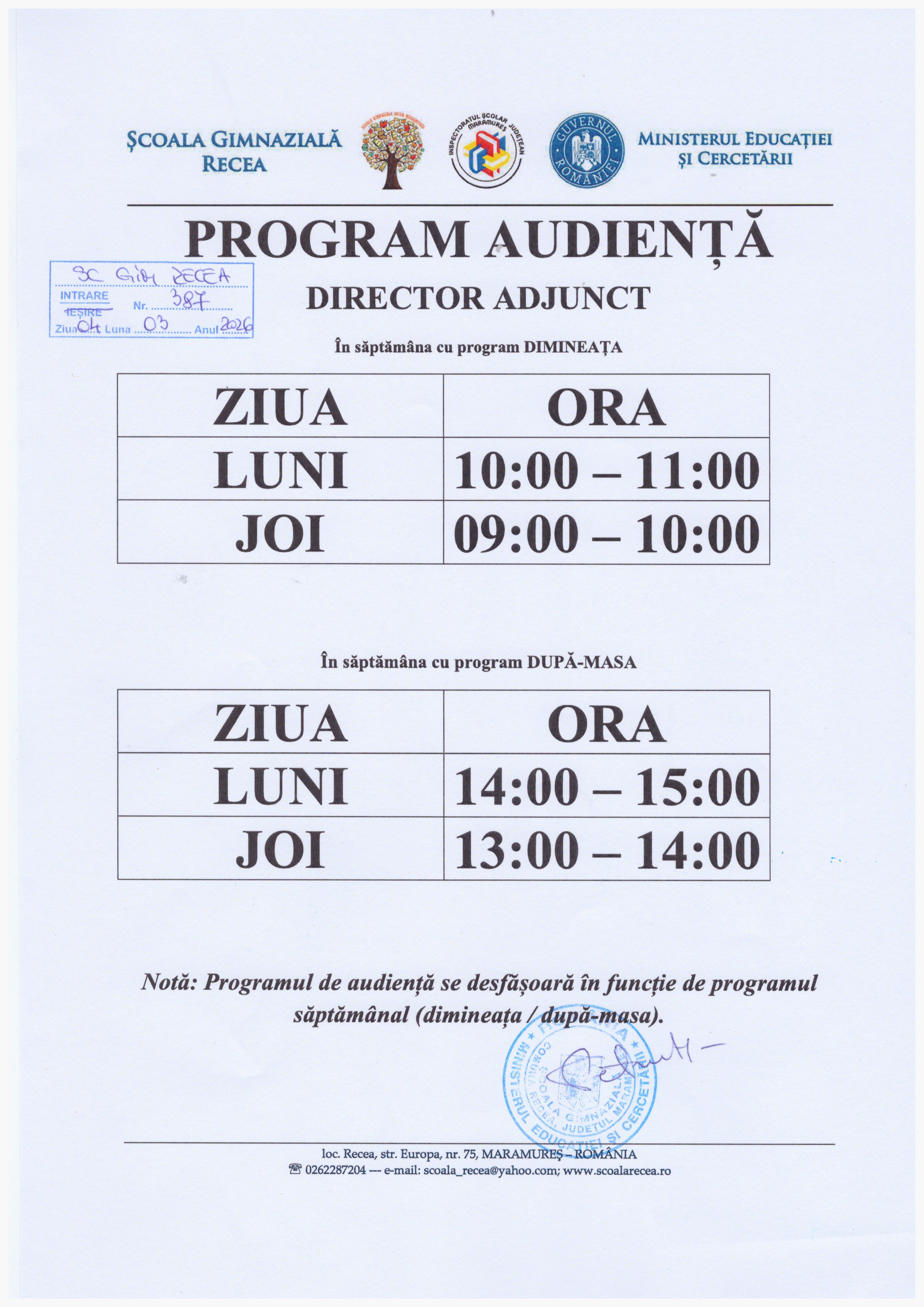 DIRECTOR ADJUNCT  - prof. Teodora Maria LUPUȚU - profesor titular, grad didactic definitivat